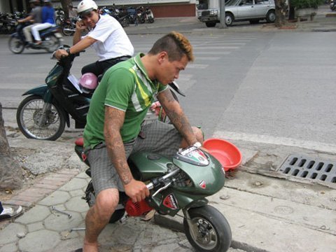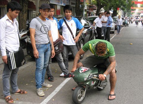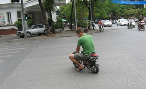 Tiếng ve ve đằng sau khiến nhiều người đi đường ngạc nhiên ngoái cổ lại nhìn, một thanh niên lái chiếc “xe ruồi” nhỏ xíu phóng với tốc độ khá cao, len lỏi trên đường phố Hà Nội.